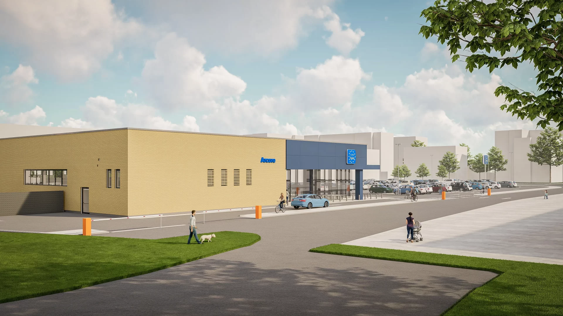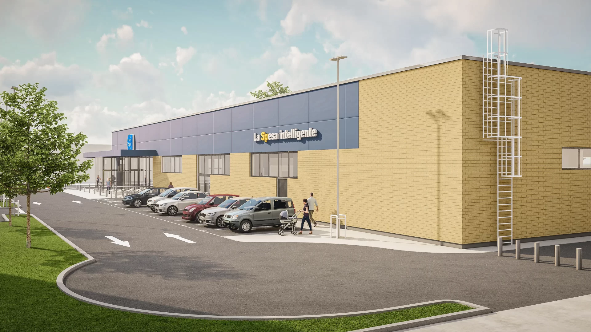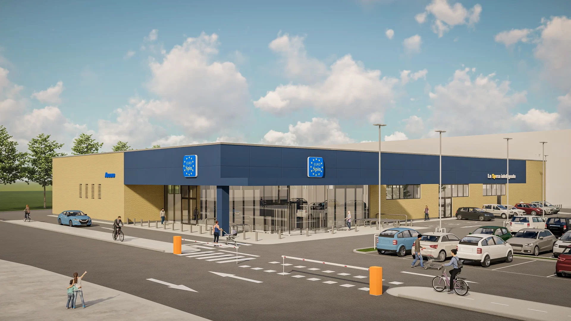 Con una superficie de intervención de 9.372 m² y una superficie cubierta de 2.233 m², el proyecto ha sido concebido con los más altos estándares de eficiencia funcional y energética. El edificio alcanza una altura máxima de 7,3 metros y un volumen construido de 16.303 m³, con una distribución precisa que favorece la experiencia del usuario final y la operatividad logística del supermercado.Los materiales utilizados han sido seleccionados para garantizar durabilidad, sostenibilidad y una estética limpia y contemporánea, coherente con la imagen de marca de Eurospin. La fachada incorpora soluciones de panelería moderna y acabados de alta resistencia, mientras que la estructura se basa nuevamente en elementos prefabricados, lo que permitirá una fase de construcción acelerada, controlada y con mínima generación de residuos.El Eurospin de Arcore no solo materializa un punto de venta moderno, funcional y sostenible, sino que además consolida un modelo de trabajo repetible y exportable, aplicable a futuros desarrollos comerciales en Europa. Esta nueva etapa reafirma nuestro compromiso con la excelencia proyectual y la innovación técnica en el sector retail.